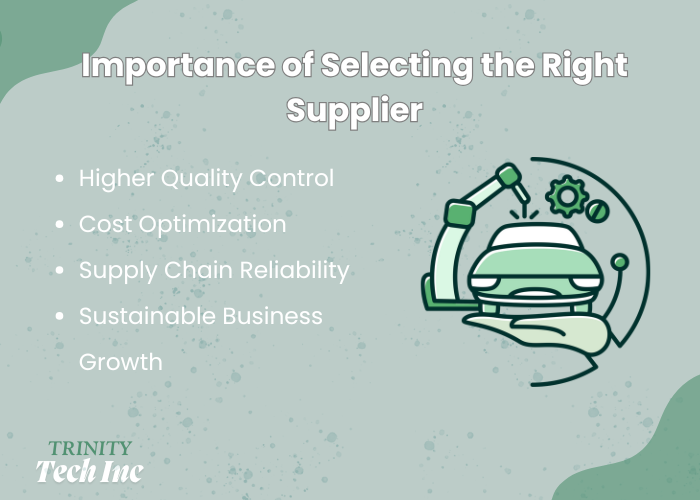 Choosing an appropriate automotive supplier is a strategic move that has a direct bearing on your business’s operational effectiveness, product quality, and long-term competitiveness. A good supplier ensures:
